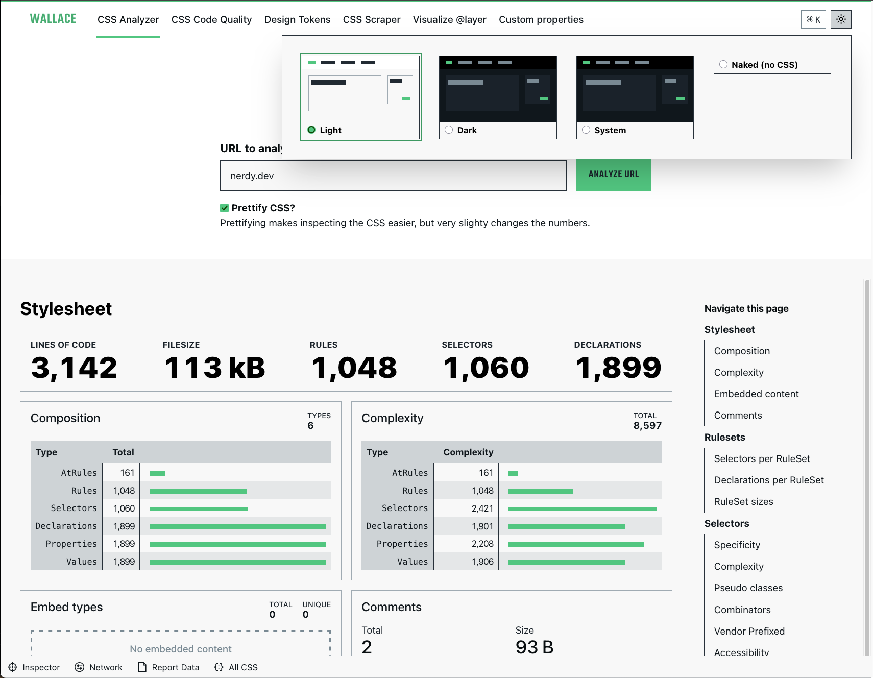 • The CSS @layer visualizer page already had some devtools panels on it and now also includes the JSON output panel from the css-layer-tree library that powers it. This allows for easy copy-pasting so you can use the result somewhere else.